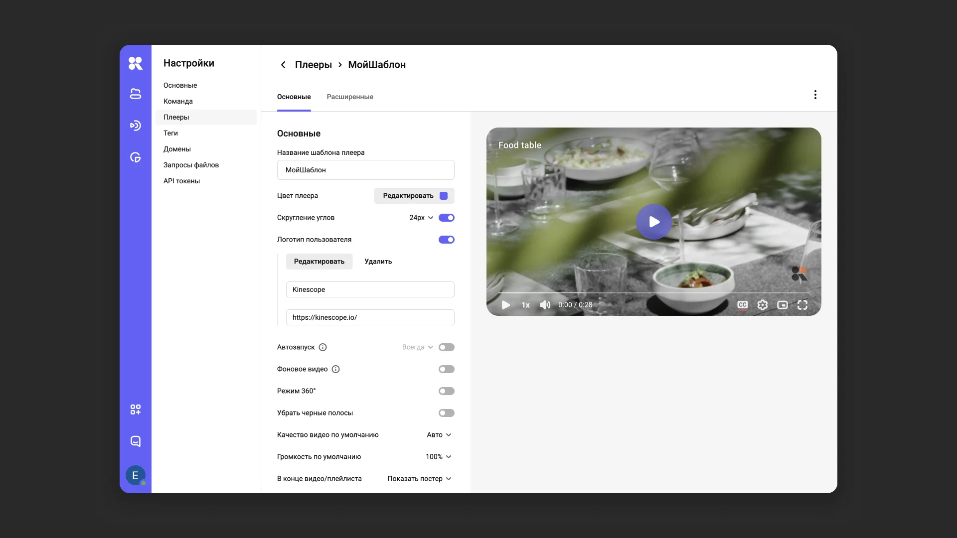 - Кастомизация плеера — настройте внешний вид плеера под ваш бренд