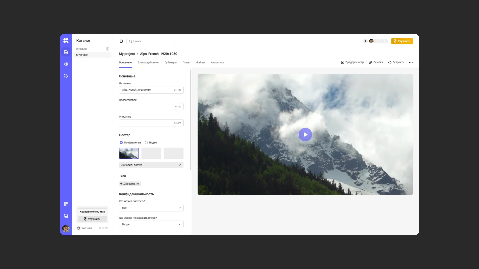 - Организовать медиатеку — используйте проекты, папки и теги для удобной навигации